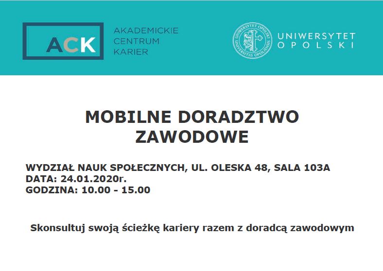 Wychodząc na przeciw oczekiwaniom studentów Akademickie Centrum Karier Uniwersytetu Opolskiego zainaugurowało cykl spotkań pt. Mobilne Doradztwo Zawodowe. Podczas indywidualnych spotkań z doradcą zawodowym istnieje możliwość poprawienia oraz stworzenia dokumentów aplikacyjnych, uzyskania informacji związanych z rynkiem pracy oraz ofertami pracy. Studenci mają możliwość skonsultowania swojej ścieżki kariery. Celem programu jest przygotowanie do swobodnego wejścia na rynek pracy po studiach.
