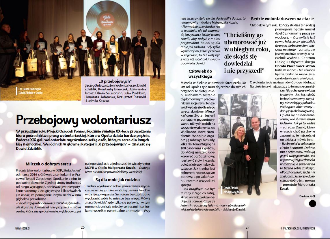 Nagrody zostały przyznane w czterech kategoriach, odpowiednich do rodzaju aktywności, jaką podjęli w zeszłym roku. Aż 52 osoby doceniono w kategorii „Wyróżnieni”, „20 osób w „Wolontariacie akcyjnym” i 20 Opolan w „Wolontariacie stałym”. Szczególnie zasłużeni wolontariusze, współpracujący z MOPR i CDO odebrali statuetki w kategorii „Ośmiu przebojowych”. – To ci najważniejsi ze względu liczby przepracowanych godzin i różnych inicjatyw, których się podejmują. Tak jak przebojowe jest Opole, tak przebojowi są nasi wolontariusze – podkreśliła Dorota Piechowicz-Witoń, naczelnik Centrum Dialogu Obywatelskiego.