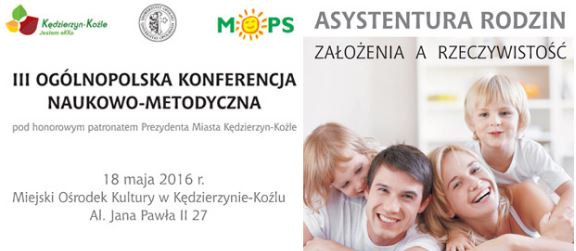 W dniu 18 maja 2016 roku odbyła się III OGÓLNOPOLSKA KONFERENCJA NAUKOWO-METODYCZNA pod honorowym patronatem Prezydenta Miasta Kędzierzyn-Koźle Asystentura rodzin – założenia a rzeczywistość. Organizatorami konferencji byli: Gmina Kędzierzyn-Koźle Miejski Ośrodek Pomocy Społecznej w Kędzierzynie-Koźlu Uniwersytet Opolski Zakład Pracy Socjalnej w Instytucie Nauk Pedagogicznych.