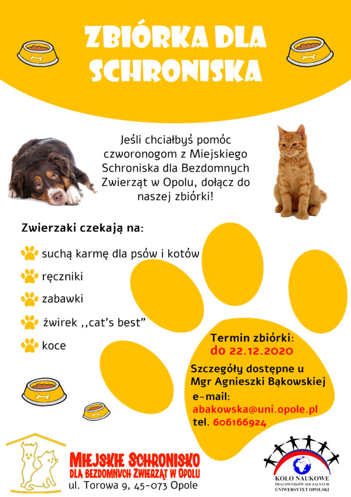 Zbiórka dla Schroniska dla Bezdomnych Zwierząt w Opolu – do 22 grudnia 2020 r.